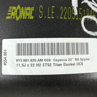 Original Porsche Cayenne Coupé (E3) 11,5Jx22" ET52 RS Spyder Felge 9Y3601025AM
