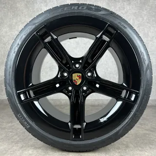 Sommerräder Porsche Taycan J1-2 21" Original Mission E Design Felgen 9J1073663KB Neu Schwarz hochglanz